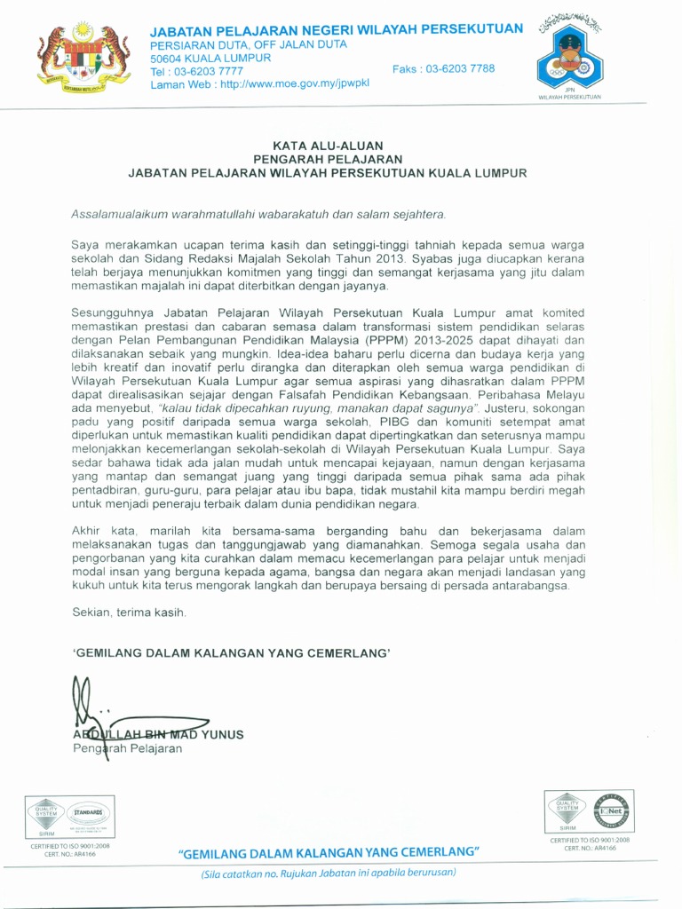 Related : Kata Alu-Aluan Menteri Pendidikan Untuk Majalah Sekolah 2019 - Kpm ucapan kata alu aluan ybhg datuk dr amin bin senin ketua pengarah pelajaran malaysia untuk penerbitan majalah sekolah seluruh malaysia sesi 2017..